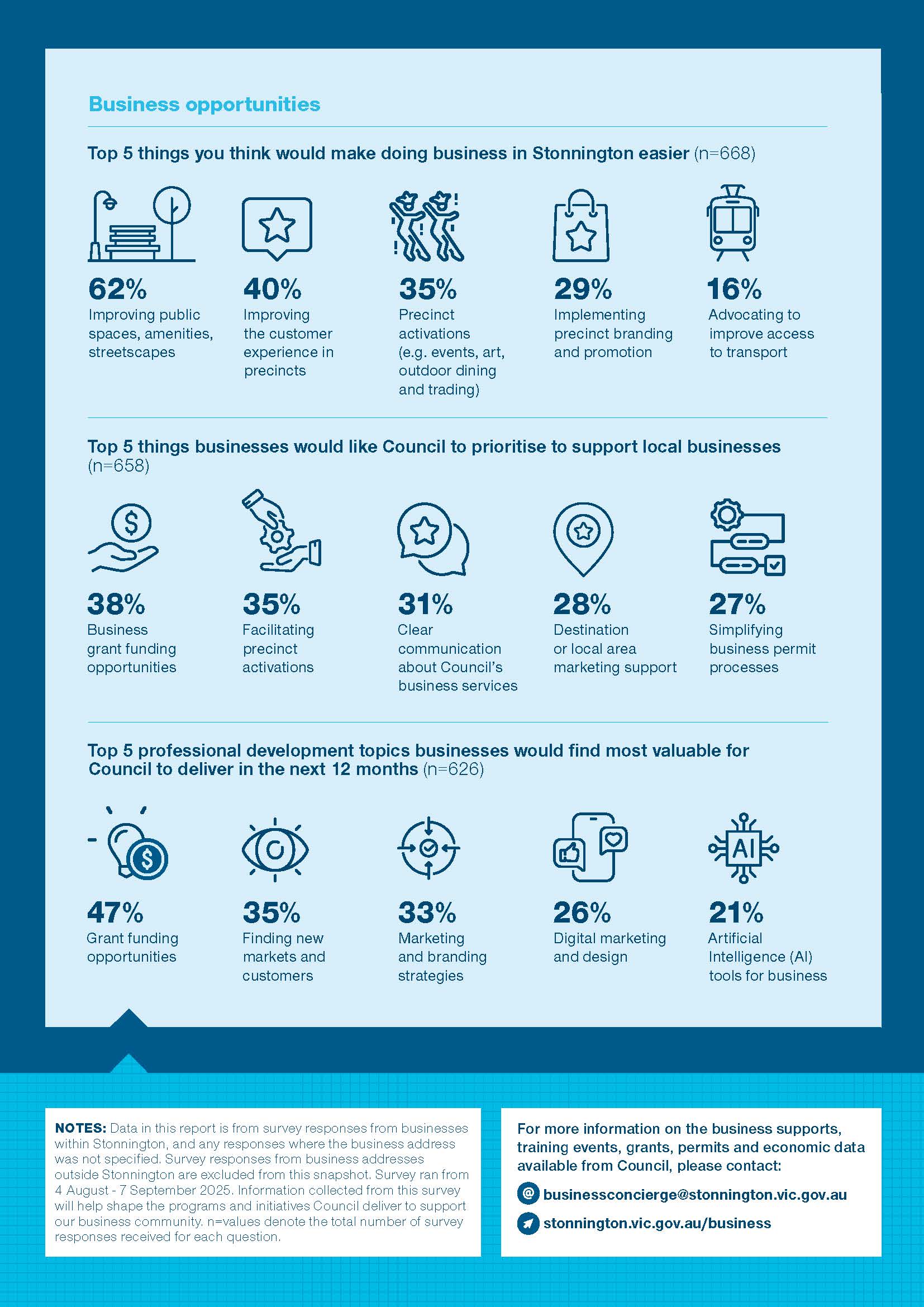 The City of Stonnington’s biennial Business Health Survey is back, and we invite you to share your valuable business insights. By completing the survey, you’ll help us better understand your business needs, priorities, and challenges, both now and in the future.